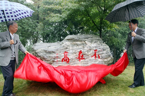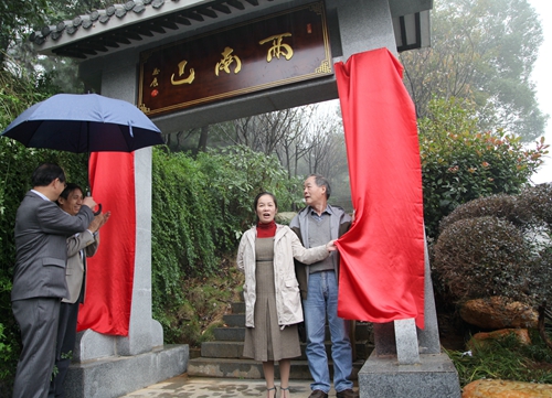 首场报告会结束后,与会专家学者到两南山参观了陈寅恪研究院和陶渊明研究院,并举行了两南山山门对联和“不在高”石刻揭幕仪式。仪式由