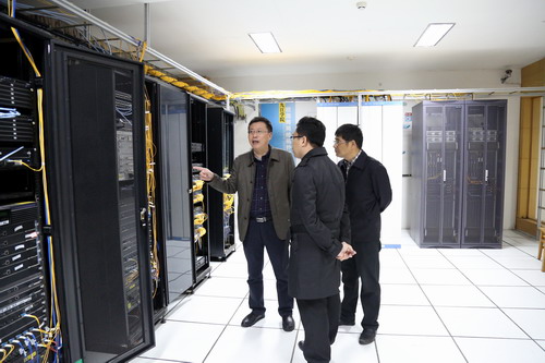 随后,梅龙宝教授陪同柬埔寨王家孔子学院院长谢莫尼勒阁下参观了网络中心机房、数据中心机房、校园一卡通中心机房、平安校园机房,了解学校网络运行和教学系统应用情况,谢莫尼勒院长对我校信息化建设给予高度评价。