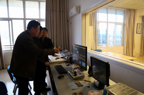 柬埔寨王家孔子学院院长谢莫尼勒还来到数字传媒中心,参观了数字传媒实验教学中心的多个实验室,并体验了数字教学资源的制作过程。