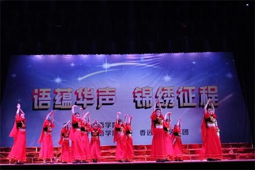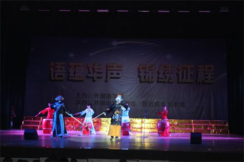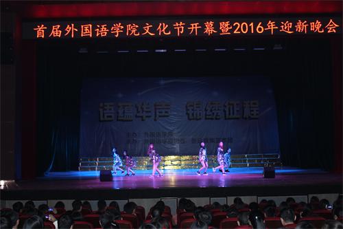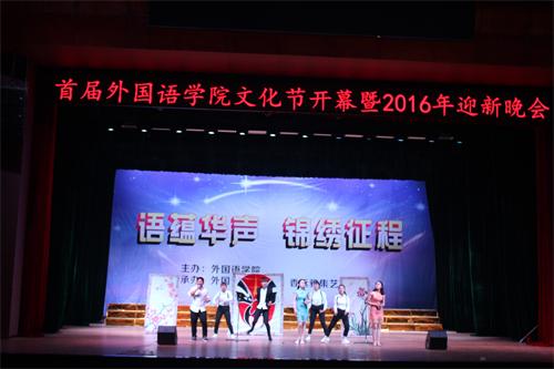 11月16日晚,外国语学院首届“文化节”暨2016年迎新晚会于校大礼堂隆重举行,校纪委书记魏立平、学生处处长刘平、校团委书记闫来英、外国语学院院长韩琨、院党委书记杨杰、副书记彭晓及师生代表千余人观看了此次演出。