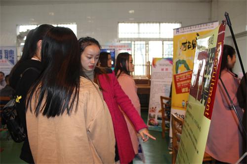 招聘会于上午9:00正式开始,现场气氛良好,秩序井然。每位来应聘的毕业生都带着准备好的简历,在企业展位前详细了解招聘岗位的具体情况,积极地投递简历并与招聘人员交流。在招聘现场,有的用人单位制作精美宣传海报、有的在现场播放企业宣传片、有的则主动向应聘学生介绍企业情况。此次招聘会有多家企业是外国语学院和电子商务学院长期合作单位,他们对