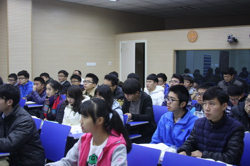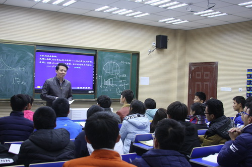 11月23日上午,校党委书记郑翔到文友楼202教室与理学院A1631班同学一起听课,理学院许成锋副教授正在讲授的是《高等数学》中的定积分课程,教务处长马明亮、理学院院长周金贵、党委书记邹国辉一同听课。