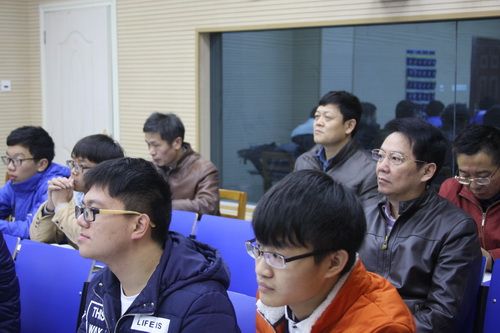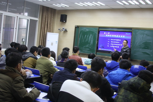 郑翔书记在课后进行点评时,向同学们简要介绍了学校的听课制度,分享了自己学习数学的经历。他指出,许老师授课有三个优点:一是备课充分、内容娴熟、PPT的制作精良;二是讲解清晰、举例恰当、嗓音有特色;三是PPT演示和板书相结合的运用手段,没用废此立彼,湿抹布擦黑板的方式避免了粉尘,值得推广。