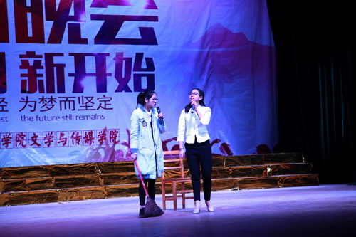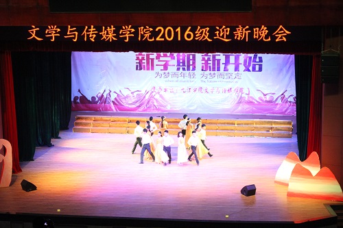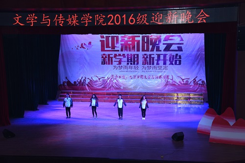 晚会伊始,礼堂大屏幕上开始播放文传16级新生们军训时的视频,熟悉的场景又勾起了大家那段珍贵的回忆。晚会节目内容丰富,形式多样。开场舞《一步之遥》以华丽的服装、曼妙的身姿让观众们眼前一亮。情景剧《助教与新生》和小品《大学小事》则生动形象地描绘了出大学生们真实的日常生活,民族舞《男孩女孩》与歌曲串烧《唱出自我》又让观众们的思绪穿梭于辽阔的草原与喧哗的都市之中。一个个精彩的表演都向大家展示出了当代大学生的青春洋溢、活力四射的精神风貌。