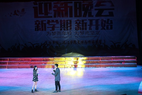 晚会上,一个特殊的环节深深地打动了在座观众。文传学院采访学生家长的画面出现在大屏幕上,视频中是2016级新生家长对新生的寄语。“尊敬师长,团结同学。”“在外要注意身体,不要委屈了自己。”新生家长们通过视频对初次离开家乡来到大学的子女们传达祝福和嘱托,一字一句无不饱含父母的思念与期盼,引起了全场的共鸣。