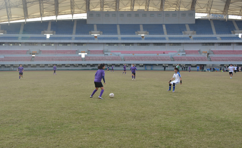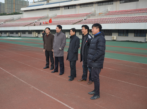 12月1日下午, 校足球队与江西女足友谊赛在八里湖体育场举行,校党委书记郑翔、校纪委书记魏立平一行前来观赛,八里湖校区管理办主任段宝斌、体育学院书记付和忠陪同。