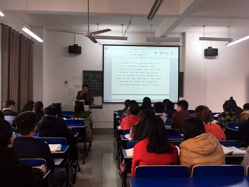《国际经济法》是一门法学双语专业课程,具有极强的专业性和实务性,韩守莹老师作为一名双肩挑老师,不仅法学理论功底深厚,而且拥有多年从事律师的实务经验,授课效果良好。课后,陶副校长对韩守莹老师的讲授给予了充分的肯定。