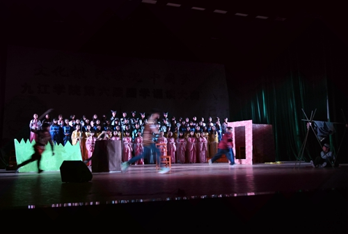 政法学院诵读的《将进酒》,诗篇发端就是两组排比长句,如挟天风海雨向读者迎面扑来。“君不见黄河之水天上来,奔流到海不复回”,以黄河的伟大永恒形出生命的渺小脆弱。这个开端可谓悲感已极,却不堕纤弱,可说是巨人式的感伤,具有惊心动魄的艺术力量,学生们用自己的声音展现了一个桀骜不驯、充满自信、孤高自傲和自信为人的自我价值、渴望用世的积极思想的李白。而文传学院演绎的《蜀道难》,则从李白袭用乐府古题,展开丰富的想象,着力描绘了秦蜀道路上奇丽惊险的山川,并从中透露了对社会的某些忧虑与关切,表现了作者强烈的忧国忧民的情怀。
