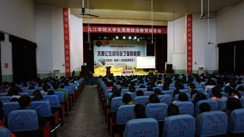 大学生思想政治教育报告会、“爱莲讲堂”进高校暨第152期濂溪讲坛,在浔东校区大礼堂作了一场《不要让生活夺走了你的信仰》为主题的讲座。本次讲座由九江市妇联、校党委宣传部、浔东校区管理办合举办。副校长杨耀防、九江市妇联副主席江浔到场聆听了讲座。党委宣传部、浔东校区管理办相关负责人与浔东校区的1000余史师生一起聆听了这场感人的报告会。讲座由浔东管理办副主任周学英主持。