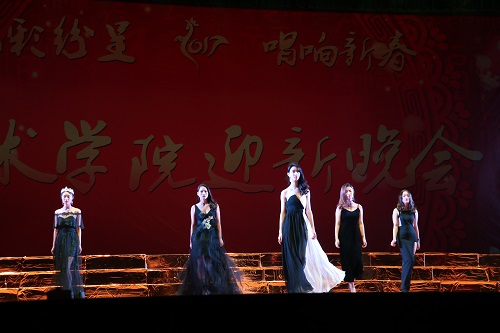 12月15日晚,艺术学院迎新暨2017年元旦晚会在大礼堂举行。副校长王万山、夏启国,校团委副书记赵宇剑,艺术学院党政领导、全体教师老师以及2016级全体新生一起观看了本次晚会。