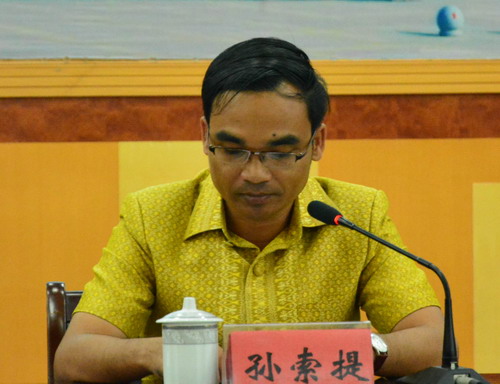 本次冬令营和体验团领队代表柬埔寨亚欧大学副校长孙索提在欢迎仪式上致辞。他首先对