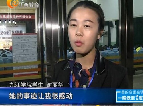 学生谢丽华:她年龄跟我们差不多大,但是她经历了这么多,还能这么有自信,还能这么开朗乐观,她的事迹让我很感动,