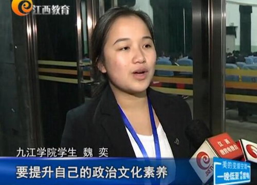 学生魏奕:促使我们在今后的学习和工作中,提升自己的政治文化素养,不断地去奉献他们,奉献社会。