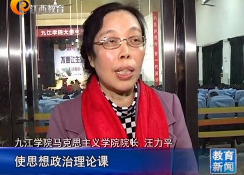 马克思主义学院院长汪力平:带我们的学生走出课堂,深入了解国情、省情、市情,让学生理论联系实际,加大网络课程的建设,通过微博、微信等等多种形式加大对学生的思想政治教育。(江西教育电视台2016年12月21日http://www.jxetv-com/contents/12/15532.html)