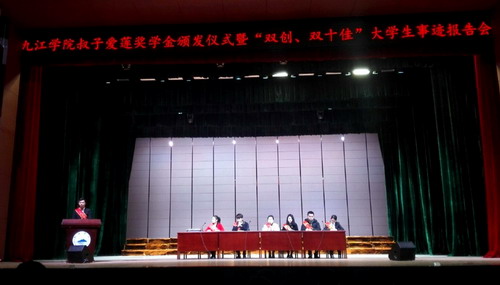 学生处处长刘平宣读了叔子爱莲奖学金表彰决定,团委书记闫来英宣读了双十佳表彰决定,学生处副处长郭青宣读了首届创新创业标兵表彰决定。