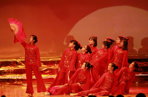 演出结束后,伴着欢乐的节拍,校领导走上舞台,与演出人员亲切握手,并与大家合影留念。至此,整台晚会圆满结束。
