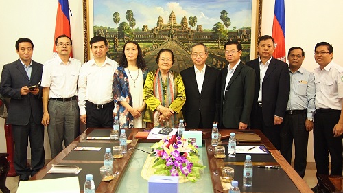 随后,杨慧文副厅长一行访问了孔子学院,谢莫尼勒院长和夏修龙院长介绍了孔子学院自创办以来的发展历程、现状以及各教学点的教学情况,播放了介绍孔子学院的视频。访问团还参观了孔子学院教室、计算机室和图书馆等设施,观看了孔子学院开展以“我运动,我健康”为主题的文化教学活动。杨副厅长对柬埔寨孔子学院所取得的成绩给予充分肯定,称之为全球最好的孔子学院之一。
