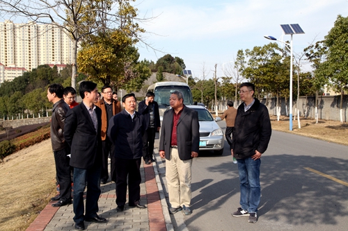在艺术学院新区,杨耀防副校长代表学校对考评组一行的到来表示了热烈的欢迎,并向卢福财厅长一行简要介绍了学校的发展以及节能工作情况。同时,他还就学校作为九江市的接受省考评组考察单位之一表示荣幸和感谢。