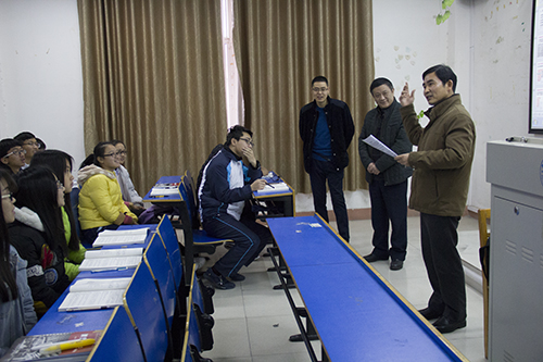 2月22日上午,校党委副书记魏立平来到望庐楼507教室同土建学院B1633班同学一起听了土建学院刘东方老师的《建筑基础理论》课程。土建学院李华锋院长、郭玉荣书记一同听课。