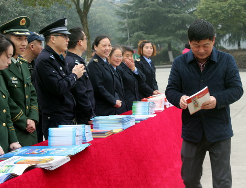 为推动广大师生积极参与校园治安综合治理,共同建设和谐校园,在校园营造“综治工作人人有责,和谐校园人人共享”的浓厚氛围,根据学校2017年度综治工作安排,3月17日上午,学校在学生活动广场举办了2017年度综治工作主题宣传活动,拉开今年综治宣传的帷幕。副校长夏启国出席活动并观看了宣传展板,信息学院、外语学院、化环学院、理学院、机材学院、后勤管理处、学生处、保卫处负责人及500余名师生参加了活动。
