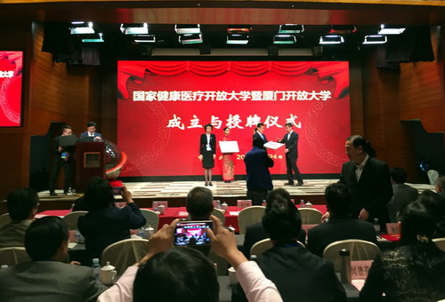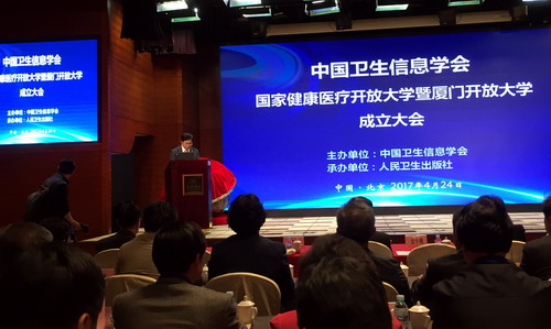 4月24日,由国家卫生计生委和教育部共同发起成立的国家健康医疗开放大学暨厦门开放大学成立大会在京召开。国家卫生计生委副主任金小桃及卫计委规划与信息司、科教司等相关司局负责人,教育部高等教育司司长张大良,厦门市副市长卢江,以及中国工程院王辰等院士,一些高等医药院校院(校)长和医院院长等领导专家代表300余人参加了会议。