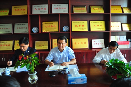 刘校长充分肯定了机材学院合并近10年来建设和发展取得的成绩,同时对学院建设与发展提出了四点要求:一是要坚持以学科建设为牵引,坚持和发展优势学科方向,紧跟学科前沿、强化特色。二是要加强师资队伍建设,坚持引进高层次人才和自身培育并举,采取传帮带、企业实训、挂职等形式,不断强化教师实践能力培养。三是要不断提升教育教学质量,强化学生实践能力培养;鼓励学生参加各类科技竞赛,对重点项目重点培育。四是要加强对外合作与交流,充分利用杨叔子院士工作站等平台,紧跟国内外学术发展前沿;结合九江“新工业十年行动”等发展战略,主动对接地方企业项目建设,强化社会服务功能。会上,副校长纪岗昌对机材学院的实践教学、人才引进和培养等提出了要求和建议。