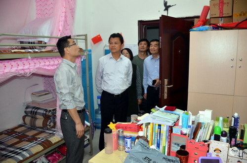 4月25日至28日,刘晓东校长在副校长纪岗昌、杨耀防,党院办主任刘遵海等陪同下,先后到八里湖校区、机材学院、后勤管理处调研指导工作。八里湖校区管理办、体育学院、政法学院、机材学院、后勤管理处党政班子成员及主要科室负责人分别参加了调研座谈会。