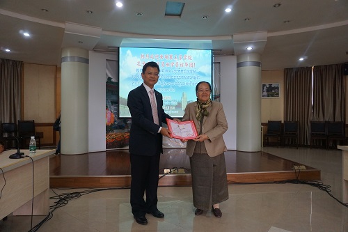 进行中国文化体验的孔子学院官员班学员表示热烈的欢迎。刘晓东校长首先简要介绍了