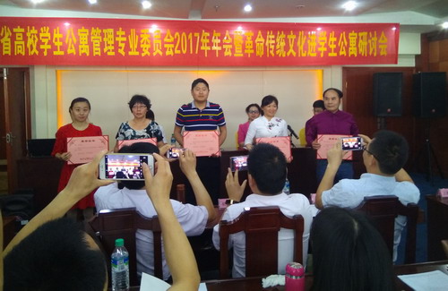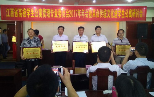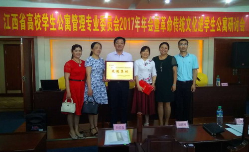 会议对2016年高校公寓管理先进集体、先进个人和感动公寓人物进行了表彰。我校被授予2016年江西省高校后勤协会公寓管理专业委员会“先进集体”,林蓉、龚红风、赵琼、汤丽娜等四名同志被评为“先进个人”,龚红风同志被江西省高校后勤协会公寓专业委员会评为“感动公寓人物”。会议安排了南昌大学等三所高校进行了公寓管理经验交流。组织参观了赣南师范大学、江西理工大学、江西环境工程职业学院学生公寓,并对传统文化进学生公寓进行了研讨。