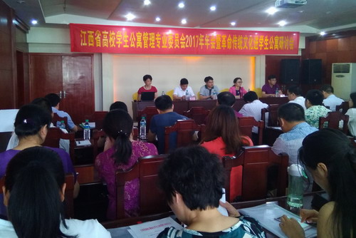 5月26至27日,江西省高校后勤协会公寓管理专业委员会2017年年会暨革命传统文化进学生公寓研讨会在赣南师范大学召开。赣南师范大学副校长郭新春、省高校后勤协会公寓专业委员会主任胡盛华出席会议,全省高校公寓管理代表100余人参加了会议,我校宿管中心主任王结选一行参加会议。会议由省高校后勤协会公寓专业委员会秘书长李斌艳主持。