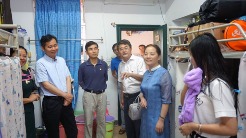 在浔东校区和八里湖校区,赵伟走访了学生宿舍,与学生亲切交谈,了解他们的学习和生活情况,鼓励同学们珍惜在校的学习时光,好好学习,增长知识、提高能力,度过充实快乐的大学生活。赵伟在药生学院“考研最牛女寝室”宣传栏前驻足观看,他要求以“最牛寝室”为标杆,激励更多的同学刻苦学习,放飞青春理想,涌现出更多的“最牛寝室”。在经过浔东校区图书馆时,赵书记欣然接受正在拍摄毕业照的药生学院毕业班A1331班同学们的邀请,与他们合影留念,并祝福同学们前程似锦。