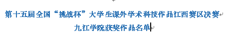 “挑战杯”大学生课外学术科技作品竞赛是高校共青团的品牌活动之一,被誉为当代大学生科技创新的“奥林匹克”盛会,本届“挑战杯”江西赛区竞赛自今年3月启动以来,共收到报备作品4000多件。经过省级初审,共有322件作品进入省级终审决赛。我校选送的18件作品全部进入决赛,参赛作品全部获奖在我校参赛史上尚属首次。