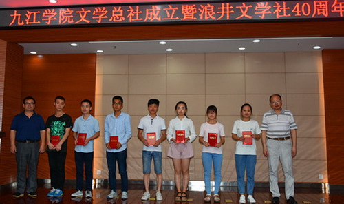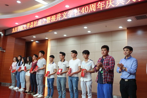 会上,王万山副校长为李宁宁教授颁发 文学总社指导老师聘书。校团委闫来英书记宣读了《关于成立 文学总社的批复》。校团委副书记赵宇剑宣读了九江市文联、九江市作家协会等单位的贺信。第一届文学总社社长王振虎同学作了表态发言。文学总社理事团成员和浪井文学社全体成员表演了诗朗诵《我们的文学徜徉在九院更辉煌的明天》《闪耀吧,青春的火光》。与会领导为首届“诗画国学”诗歌文化系列活动获奖者颁发了证书。