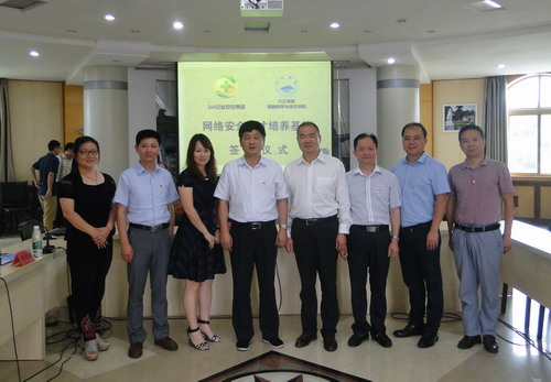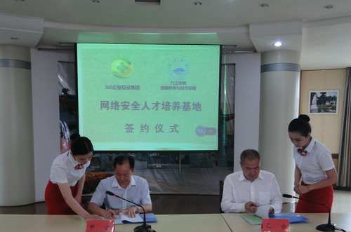 6月9日,我校信息科学与技术学院和360企业安全集团网络安全人才培养基地签约仪式在行政楼一号会议室举行,副校长夏启国出席到会致辞。360企业安全集团副总裁何新飞、江西分区总经理刘斓、渠道经理黄志军;