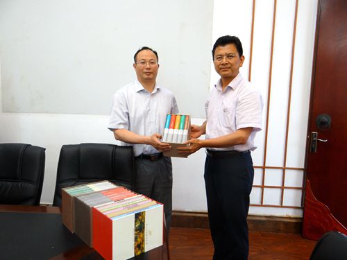 座谈会开始前,吴永明主席一行参观了我校两南山陈寅恪研究院和陶渊明研究院。刘晓东校长代表学校向吴永明主席赠送了我校庐山文化研究系列丛书。