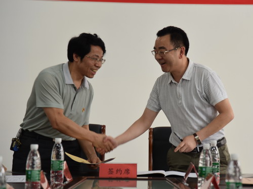 政法学院院长詹建志在双方共建九江市地方立法研究院的合作协议书上签字并交换了协议文本。