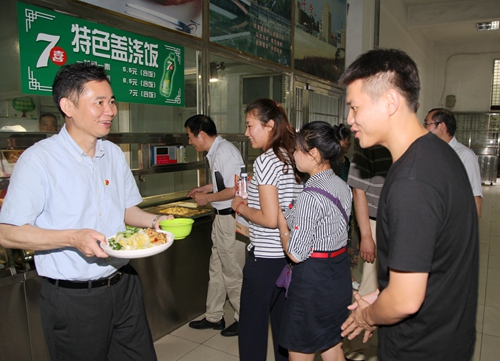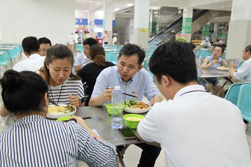 会后,赵伟书记在学生三食堂一楼,同参与座谈会的毕业生代表一起就餐。赵伟书记与他们接着下午的话题边吃边聊,同时也对他们提出的的疑问给予了解答。