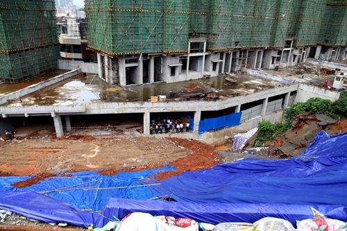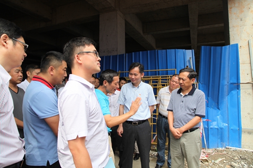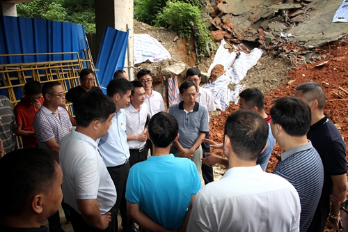 6月26日上午,九江市副市长孙金淼一行到濂溪区“新天地”项目工地,调研查看并了解该项目一护坡山体因连日降雨而再次发生大面积塌方情况,并现场指导防治工作。
