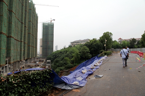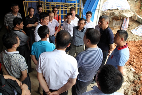 孙金淼副市长在现场询问了市国土资源局、市地质灾害应急中心等部门主要负责人及新天地项目投资方、建设方负责人关于高护坡滑坡的治理措施方案的情况。孙金淼最后强调,濂溪区要牵头处置好后续工作,治理工程要进行认真科学的设计,并经过严格的专家评审,