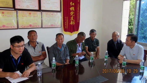 在交谈中得知,这几位老人都是村里的老党员,其中最年长的是有着44年党龄的何国洲,他1968年从部队退伍,担任了多年的村民兵连长,现在是村老年协会会长。老党员胡德奇是一位村医,他告诉赵伟同志:“ 扶贫工作做得细致,帮助村里解决了很多问题。我是一名医生,以前村里道路不通畅,有些危重病人送不出去,只能眼睁睁看着他们离去。学校驻村第一书记及时把村民的愿望反馈给学校,在学校领导帮助下对接市县有关部门,争取到了修路资金。随后,干群大干快上,把全村的泥土小路全部改建成了水泥路,彻底解决了村民出行的大难题。”赵伟听了很高兴,向老人们介绍了随行的查振华副校长,还问老人们是否认识扶贫工作队燕红波队长,让老人们有困难就找他们。