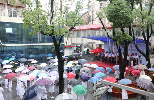 “心连心·故乡情”,7月1日,纪念建党96周年在沪赣籍医疗专家回乡义诊大型公益活动,在临床医学院/附属医院隆重举行。九江市副市长李军、 副校长杨耀防、专家代表李锋、九江驻沪办主任程厚红、临床医学院/附属医院院长张志平等出席了启动仪式,仪式由卫计委副主任陈玲珠主持。
