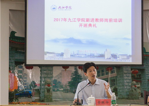 查副校长从学校的办学目标和办学定位出发,围绕学校的校史、校情及办学特色,深入浅出地介绍了我校目前的发展状态及未来的发展方向。他指出,我校有历史、有规模、有特色、有潜力,既继承了白鹿洞书院千年文脉的办学精神,又着力发挥“山江湖”的特色。人才是学校发展的支柱,学校大力引进人才,就是希望他们能围绕学校办学目标,积极投身到高等教育事业及学校的发展中去。查副校长特别指出,一个老师的成长过程包括“站上讲台”、“站稳讲台”、“站好讲台”三个阶段,期望新教师们通过不断学习和锻炼,真正做到“传道、授业、解惑”,教好书、育好人。查副校长的讲话语重心长、情真意切,全体学员报以热烈的掌声。