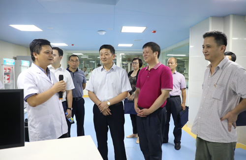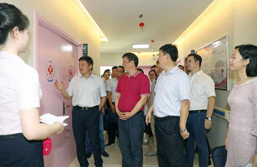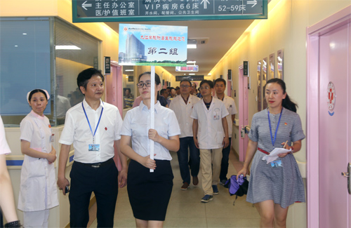 交流会后,与会人员分别由临床医学院/附属医院院长张志平、党委书记张南华带队,在其他班子成员及相关人员陪同下,分两组参观了临床医学院/附属医院东院院区,实地体验临床医学院/附属医院提升医疗服务品质,改善患者就医体验的各项具体措施。与会人员参观了临床医学院/附属医院的临床技能中心,规培学员公寓,过渡门诊,生命连廊,妇科、产科、儿科、普外科病区,病理科,检验科,放射科,休闲吧等处。与会代表对临床医学院/附属医院“天使之星”服务、空乘式服务、敞开式服务、一站式服务、夜门诊服务、集中阅片、生命连廊等特色服务举措表示充分肯定,对临床医学院/附属医院严格规范的管理、方便快捷的流程、温暖人心的服务、格调高雅的环境表示高度赞许,指出“严”、“便”、“暖”、“雅”的服务举措值得借鉴和推广。