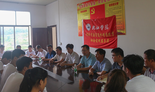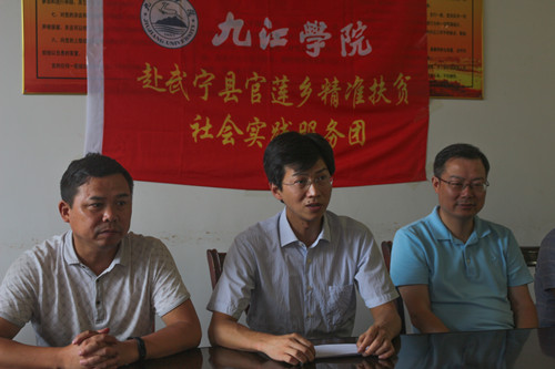 查振华副校长在学生处处长刘平、团委书记闫来英等的陪同下参加了座谈会,并作了讲话。他结合学校扶贫工作和同学们发言,勉励三下乡实践队员做到三点:一是要增强对农业的认识,二是要增进对农村的感受,三是要增加对农民的感情。他希望同学们发挥党团员的先进模范作用,了解国情社情,掌握民生百态,要学有所思,思有所悟,悟有所得。武宁县官莲乡党委书记李刚参加了座谈会并对学校支持东山村的发展表示了感谢,对“三下乡”服务队表示欢迎,勉励同学们用心去感悟农村,做一个有爱心、能自强、有担当的当代大学生。