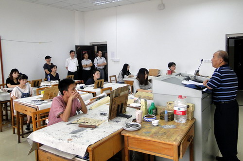 校党委书记赵伟、校党委副书记魏立平来到艺术学院教学楼检查第一课情况。赵书记、魏副书记一行从一楼到五楼一间一间教室开始检查,不时与陪同检查的教务处和艺术学院领导交流教学、科研和人才引进事宜。当发现有一间教室没有打扫干净时,赵书记要求艺术学院及时清扫,使学生养成良好的卫生习惯。赵书记一行还随堂短暂听取了艺术学院王春生书记主讲的书法课。赵书记对师生一开学就能以饱满的精神状态投入到教学和学习中去很满意,希望大家再接再厉,继续保持这种良好的工作和学习势头。