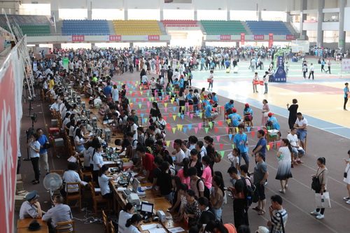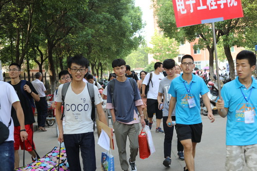 在三个校区新生报到现场,总咨询处、学生资助政策咨询处、财务收费处、校园卡咨询处、生活用品办理处和各二级学院的迎新工作点标志醒目、秩序井然。优化后的迎新工作系统更加科学、便捷,将许多报到手续进行前置处理,新生办理报到手续时,只需提交本人身份证和录取通知书。工作人员扫描读取录取通知书上的条形码,就可以获得学生的全部信息,省去了许多工作流程,大大提高了工作效率。学校为还为家庭经济困难新生在报到现场开通了绿色通道,让有经济困难的学生先报到入学,再按照国家资助政策帮助学生排忧解难,更好地为新生服务。