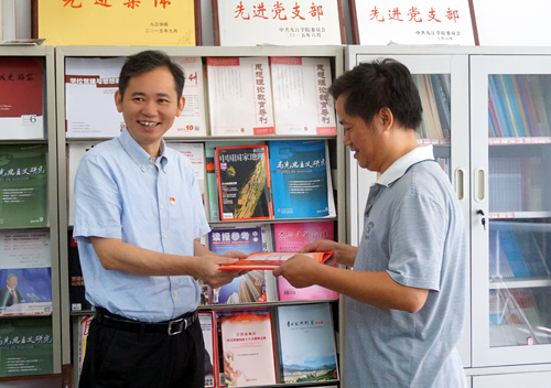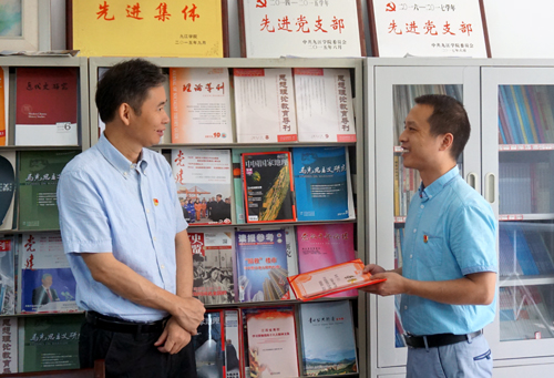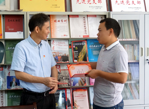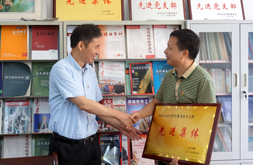 校党委书记赵伟走进马院的教研室和博士工作站,与老师们亲切握手并交谈,了解大家在学校工作和生活的情况,并向马克思主义学院的优秀教师、优秀教育工作者和教书育人先进集体颁发荣誉证书和先进牌匾。