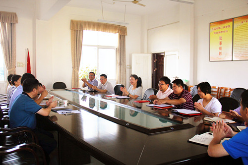 夏启国副校长边听边记并不时就相关问题进行提问,表示通过此次调研,对土建学院的各项工作有了一个大体的了解,希望土建学院在现有的基础上,进一步探索社会服务工作的新思路,新举措,做