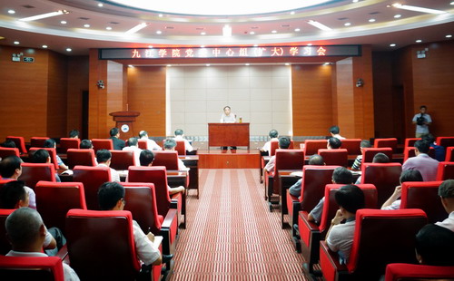 为了进一步深入学习习近平总书记重要讲话精神,贯彻落实全国、全省高校思政工作会议精神,努力开创学校思政工作新局面。9月25日下午,学校在逸夫图书馆学术报告厅召开了9月份党委中心组(扩大)学习会。邀请中国社科院马克思主义研究院党委书记、院长邓纯东教授作《高度重视国家意识形态建设 努力巩固马克思主义指导地位》专题报告。在家校领导赵伟、魏立平、纪岗昌、陈春生、杨耀防、夏启国以及各单位副处以上干部、纪委、组织人事部、宣传部、统战部、党办、学工部、校团委、党校、教务处、科研处等单位副科以上干部、学校各民主党派负责人、知联会、留联会负责人、马克思主义学院教师代表等200余人聆听了报告。校党委书记赵伟主持了学习会。