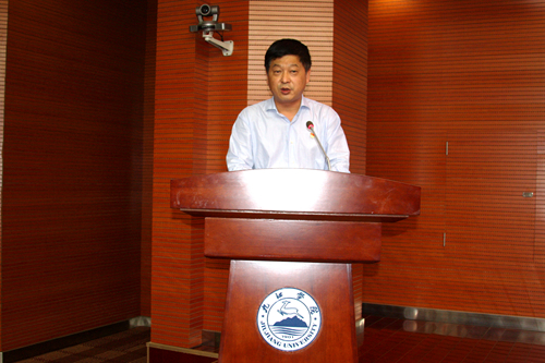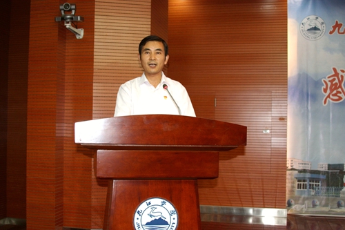 校党委副书记魏立平发表了热情洋溢的讲话。他说,今天我们在这里举行一个特别的仪式,既是感谢,也是纪念,更是激励。以往活动的主体多是教师和干部,今天主要是朝气蓬勃的同学。因为我们今天欢迎的尊贵客人,也曾是我们 的一名学生,如今创造辉煌的他,不忘母校,不忘师恩,捐资200万元在母校设立“浩鹏明德奖”,褒奖在教书育人中表现突出的教职员工、褒奖发愤图强努力成才的学弟学妹,他就是原2001级中文专业学生、现上海中云资产管理有限公司董事长毛浩鹏校友!我们今天接受的是财富,永远致敬的是精神。